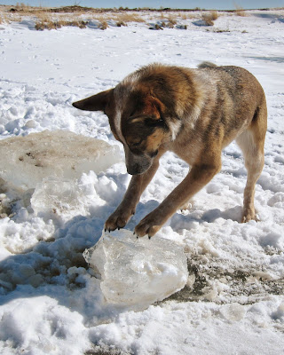 And she likes chasing ice chunks across the reservoir. There is much slipping, sliding and skidding that goes on.